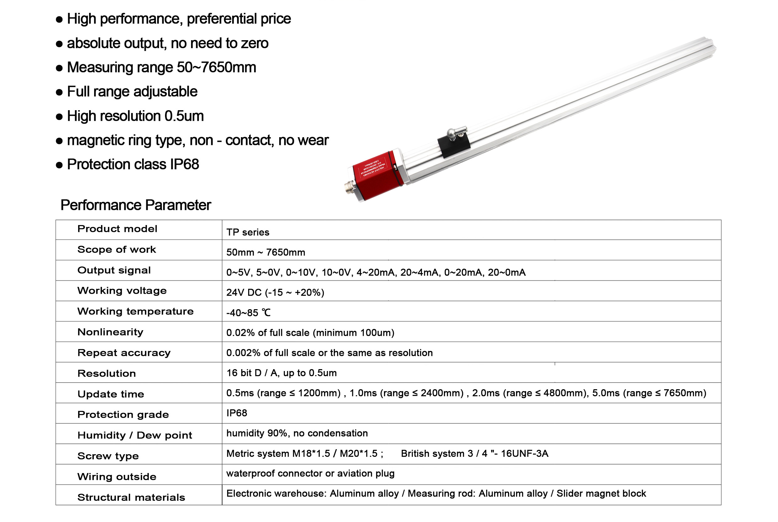Nonlinearity < 0.02% of full scale (minimum 100um)